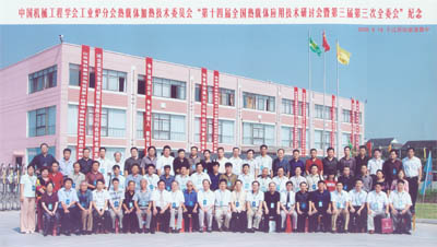 瀚邦公司總工程師劉世武先生,2005年9月在江蘇省張家港市主持召開的熱載體加熱技術(shù)委員會(huì)第三屆第三次全委擴(kuò)大會(huì)議暨第十四屆全國(guó)熱載體加熱技術(shù)研討會(huì)上同與會(huì)代表合影,前排右十為劉世武先生。